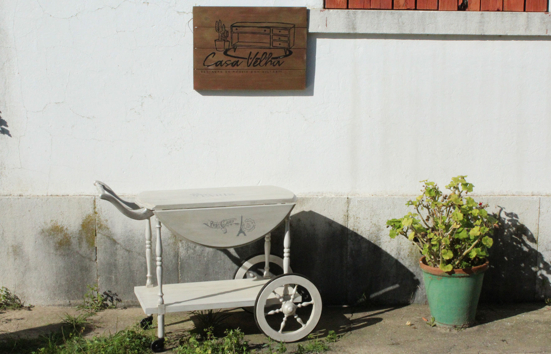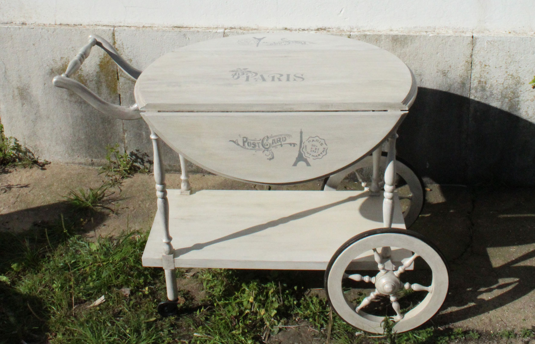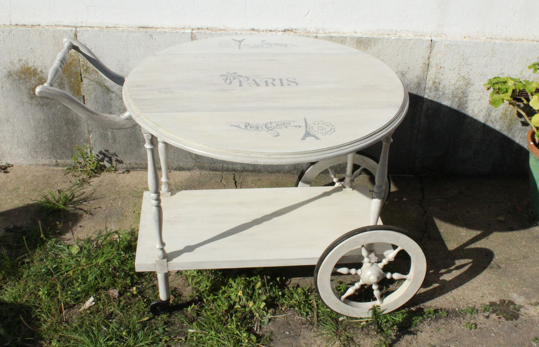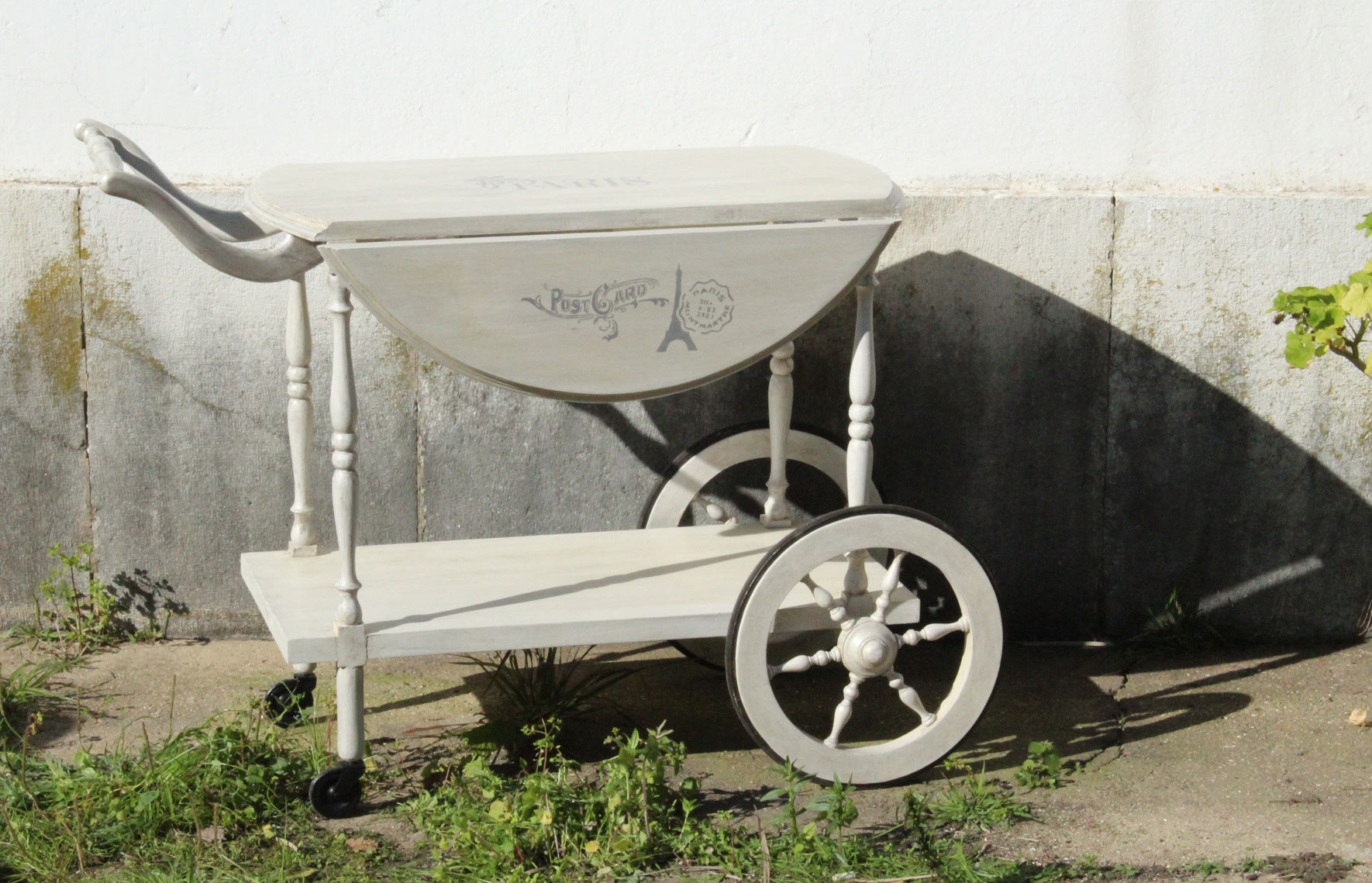 Oh La La! Makeover de um carrinho de chá. Passou de castanho escuro, pesado e antigo a uma peça cheia de charme.Â